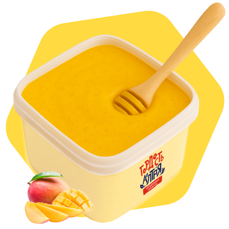 Крем-мёд с манго — это десертный продукт, сочетающий натуральный цветочный мёд Алтая и ароматную фруктовую добавку. Мёд имеет взбитую, кремообразную текстуру, ярко выраженный вкус спелого манго и лёгкую кислинку.